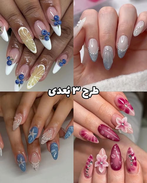 امسال ناخنها فقط رنگ نمیگیرند، بلکه حجم و بافت هم دارند! با استفاده از ژلهای خاص یا طراحیهای برجسته مثل قطرههای آب، گلهای کوچک، مروارید، کریستال و شکلهای عجیب، طراحان ناخن جلوهای مجسمهوار و فانتزی خلق کردهاند. این ترند برای کسانی که دوست دارند ناخنهایشان مثل یک اثر هنری خاص باشد، عالیست.