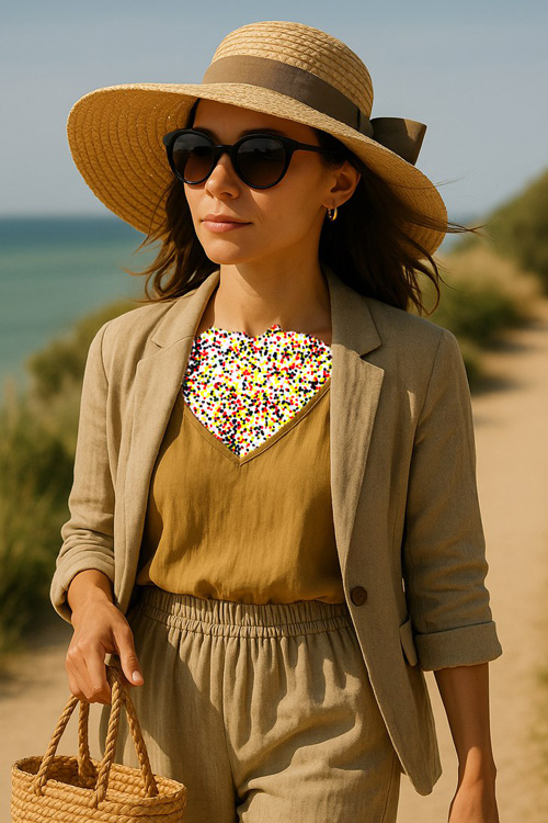 نکته استایل: آن را با لباسهای یکسره نخی، شلوارهای گشاد تابستانی و کفشهای بندی راحتی ست کنید تا ترکیبی شیک و خنک داشته باشید.