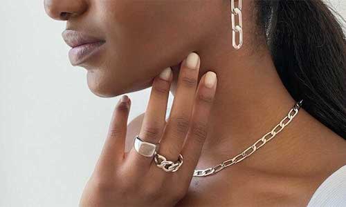 اگر پوست شما تناژ سرد دارد (معمولاً رگهای زیر پوست آبی یا بنفش دیده میشوند و پوست در برابر آفتاب بیشتر میسوزد تا برنزه شود)، جواهرات نقرهای انتخاب هوشمندانهتری هستند. نقره، پلاتین و طلای سفید با درخشش خنک خود به خوبی با پوستهای سرد هماهنگ میشوند و رنگ طبیعی آنها را زندهتر و درخشانتر جلوه میدهند. استفاده از طلای زرد یا رزگلد روی پوستهای سرد گاهی باعث میشود چهره کمی بیحال یا رنگپریده به نظر برسد.