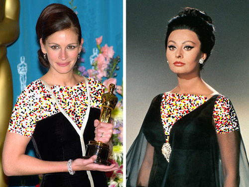 هنگامی که جولیا رابرتس در مراسم اسکار ۲۰۰۱ لباس قدیمی از برند «ولنتینو» را پوشید و آن را با مدل مویی که بالا بسته شده بود همراه کرد، بسیاری او را با سوفیا لورن مقایسه کردند.