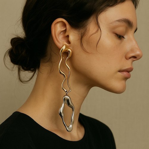 گوشوارههایی با اشکال سیال و ارگانیک که شبیه به مجسمهها هستند، به یک ترند برجسته تبدیل شدهاند. این طراحیها اغلب نامتقارن بوده و از مواد مختلفی ساخته میشوند.