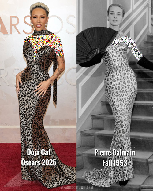 علاوه بر شانل، سایر خانههای مد نیز از تاریخ خود الهام گرفتند: دوجا کت لباسی از «بالمین» را انتخاب کرد که بازسازی پیراهنی با طرح پلنگی از سال ۱۹۵۳ بود. این پیراهن با اندک تغییراتی در برشها و استایلینگ، هماهنگ با سبک او بر تنش درخشید.