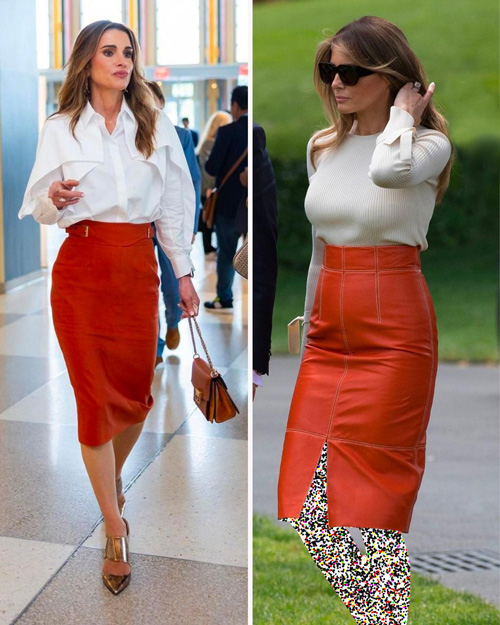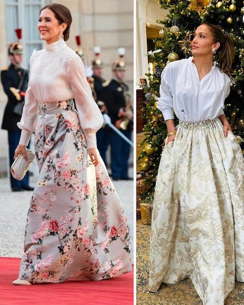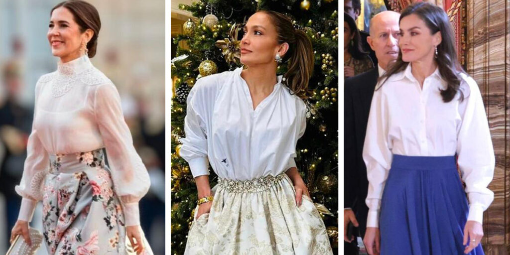 استفاده از بلوز سفید با دامن رنگی و طرحدار، نه تنها در میان افراد عادی، بلکه در بین ستارههای سینما، زنان سلطنتی و چهرههای سیاسی مانند ملکه مری دانمارک، جنیفر لوپز و ملانیا ترامپ نیز بسیار رایج است.