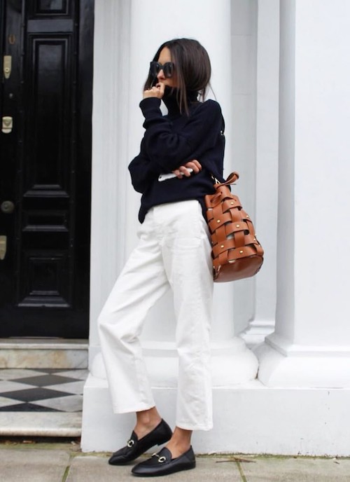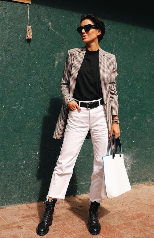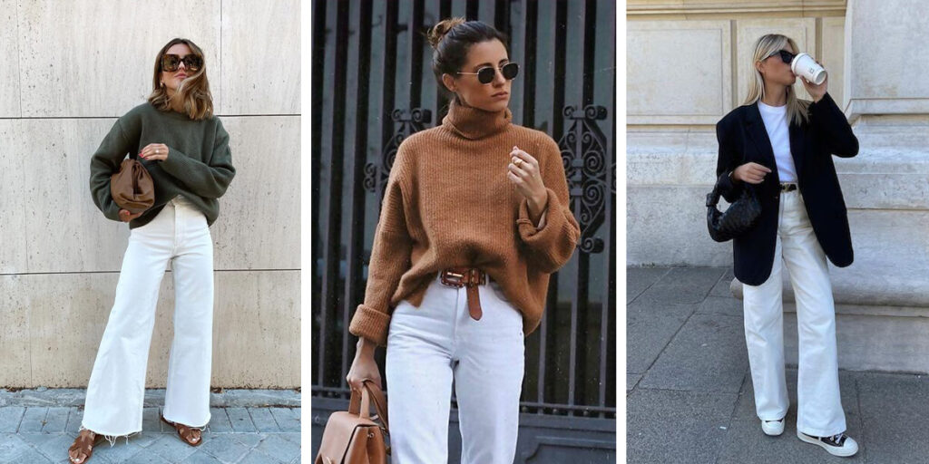 این شلوارها با کتهای تک، بلیزرها یا کتهای جین بسیار جذاب و زیبا جلوه خواهند کرد. کتانیهای سفید برای تیپهای کژوال و کفشهای لوفر مشکی برای استایلهای رسمی با جینهای سفید، انتخابی جذاب خواهند بود.
