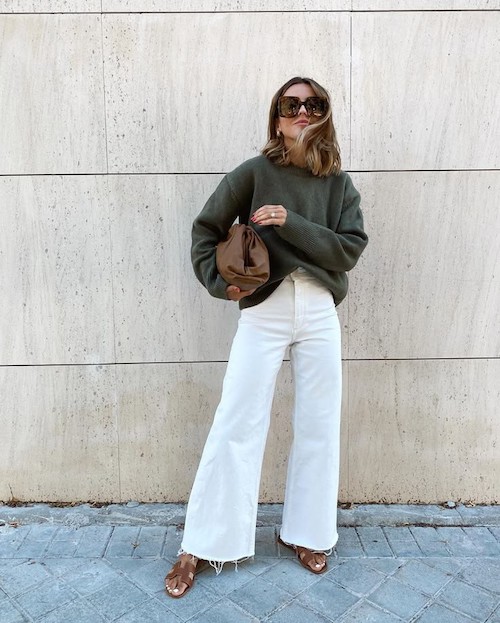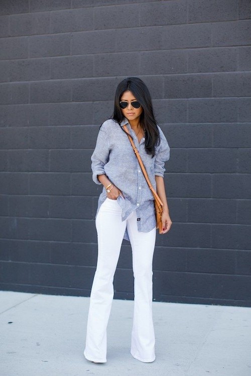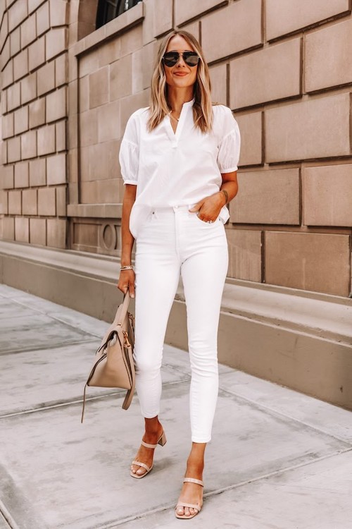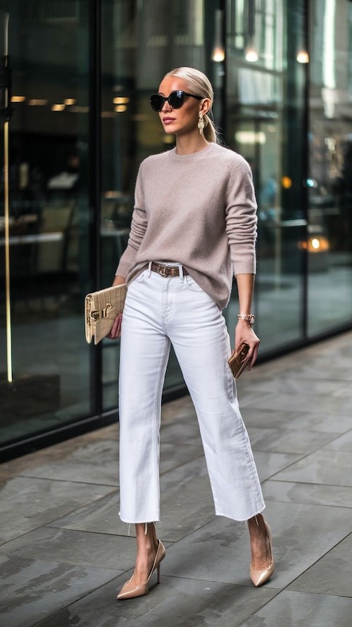 شلوارهای جین سفید را با رنگهای خنثی مثل سفید، خاکستری یا بژ و حتی رنگهای پاستلی مثل آبی آسمانی و صورتی ملیح ست کنید تا ظاهری شیک و متعادل به وجود آمده و درخشان جلوه کنید.