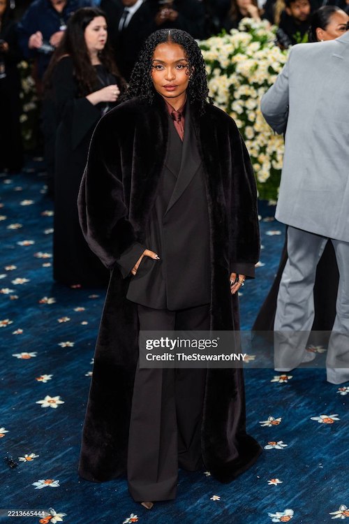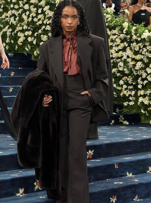 او که مادری سیاهپوست دارد، به خوبی توانست تم مراسم را در تدارک استایلش به کار بگیرد. یارا که این روزها ۲۵ ساله است، با کت بلیزر اورسایر و شلوار فاق بلند ست آن روی فرش آبی مت گالا آمد. این کت و شلوار طوسیرنگ با شومیز حریر و یقه کراواتی او که کالباسیرنگ بود، ترکیب جالبی را به نمایش میگذاشت. یارا در ابتدا دکمههای کتش را بسته و اورکتی خزدار، بلند و مشکیرنگ روی آن به تن داشت، اما پس از چند دقیقه اورکتش را درآورد و دکمههای کتش را باز کرد تا شومیزش به خوبی دیده شود.