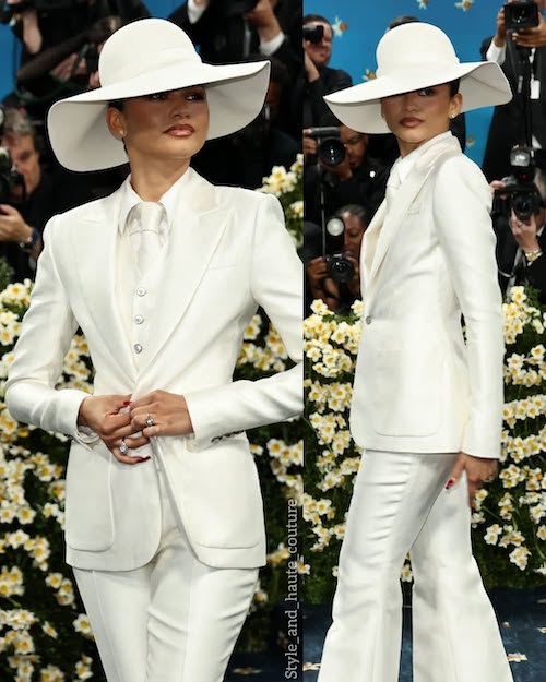 زندایا، بازیگر و مدل مشهور آمریکایی که چه در زمینه بازیگری و چه در زمینه تدارک استایل حرفهایی برای گفتن دارد، یکی از حاضران مطرح مت گالا ۲۰۲۵ بود که با کت، شلوار و جلیقهی سفیدش ظاهری الههوار و جذاب را به نمایش گذاشت. گرچه استایل او شبیه به آنا ساوای، بازیگر ژاپنی بود و تنها در جزئیات اندکی تفاوت داشت، اما این موضوع به هیچوجه زیبایی زندایا را زیر سوال نبرد.